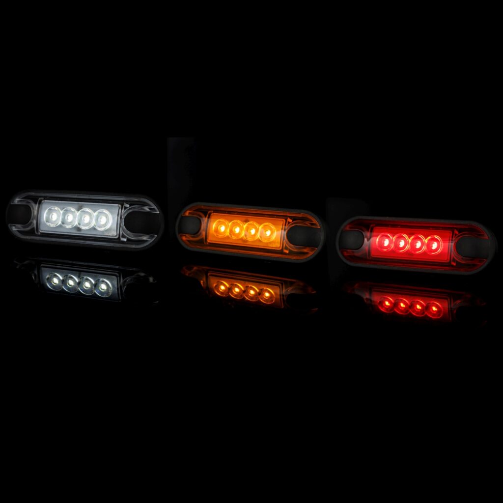 Pour certaines remorques et semi-remorques, la réglementation routière impose le montage de feux de gabarit latéraux — la loi exige ce type d’éclairage pour les véhicules et remorques d’une largeur supérieure à 2,1 m et d’une longueur supérieure à 6 m. Les feux de gabarit sur une voiture particulière sont moins fréquents, car ils ne sont généralement pas légalement obligatoires. On peut toutefois les rencontrer sur des véhicules tels que les SUV ou les camping-cars, où leur rôle est d’améliorer la visibilité des contours.