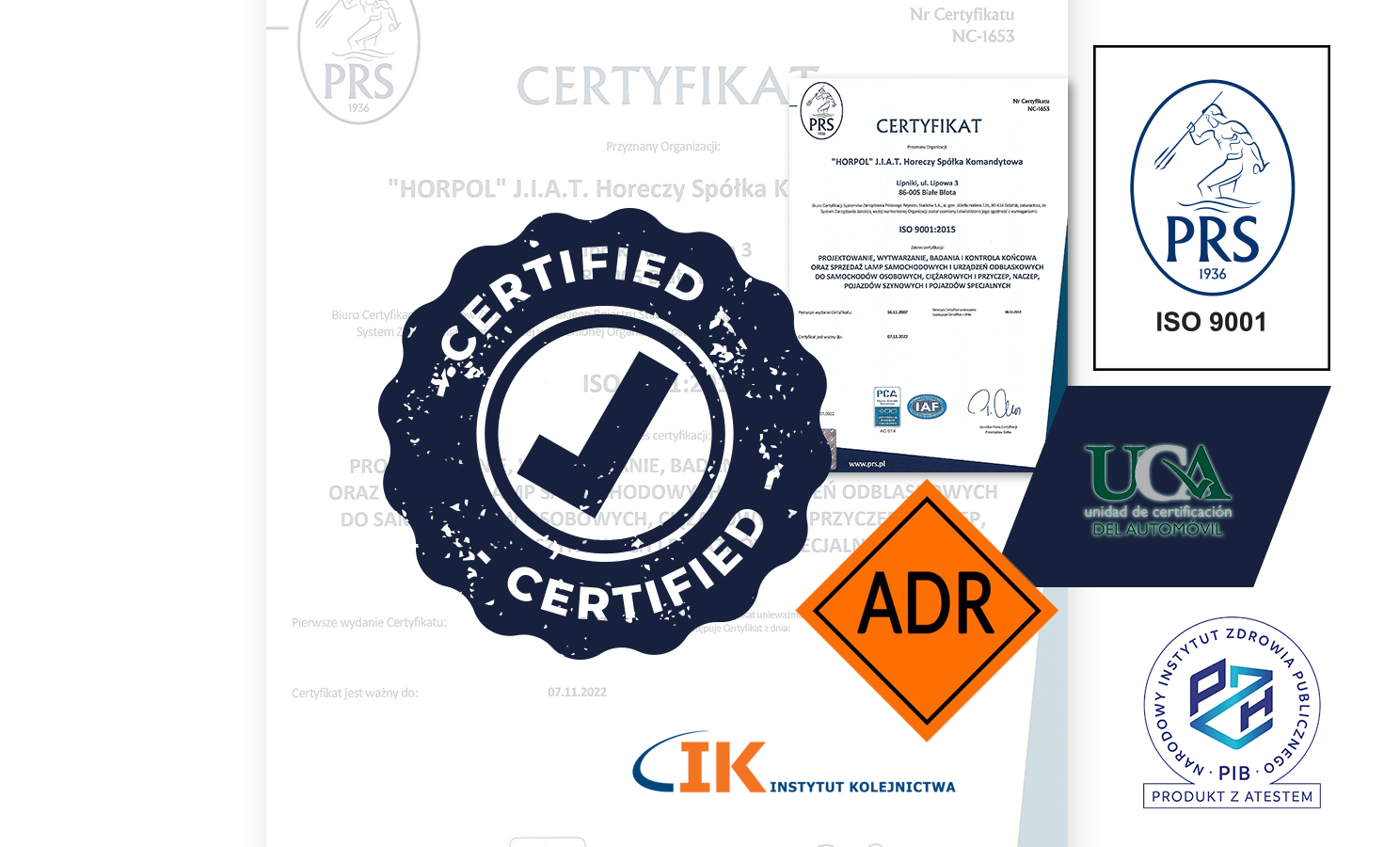 HORPOL A. Horeczy Sp. k. est une entreprise professionnelle se spécialisant dans la production, contrôle et vente de l’éclairage automobile et des dispositifs réfléchissants convenables pour tous les véhicules à moteur. Dans notre activité quotidienne, nous mettons en œuvre le système de gestion qualité moderne conforme à la norme ISO 9001:2015 lequel nous efforçons d’améliorer constamment. Cela nous permet de fournir sur le marché des produits conformes aux attentes de nos consommateurs et aux dispositions légales.