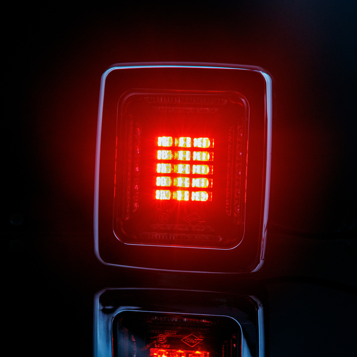 Le feu est livré complet avec un cadre d’espacement permettant un montage facile et stable sur des surfaces planes, ainsi qu’avec un cadre extérieur qui souligne l’esthétique de la finition tout en protégeant les bords du feu. Cette solution renforce la polyvalence d’application et facilite l’adaptation du produit à différents types de carrosseries.