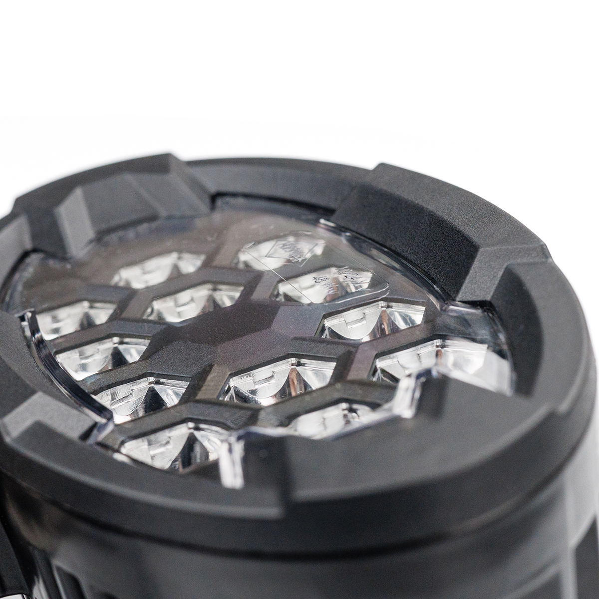 Les 12 LED haute performance génèrent jusqu’à 5500 lumens de lumière avec une température de couleur de 6500 K, proche de la lumière du jour, ce qui améliore le confort de travail, la précision et la sécurité des opérateurs – même dans l’obscurité totale.