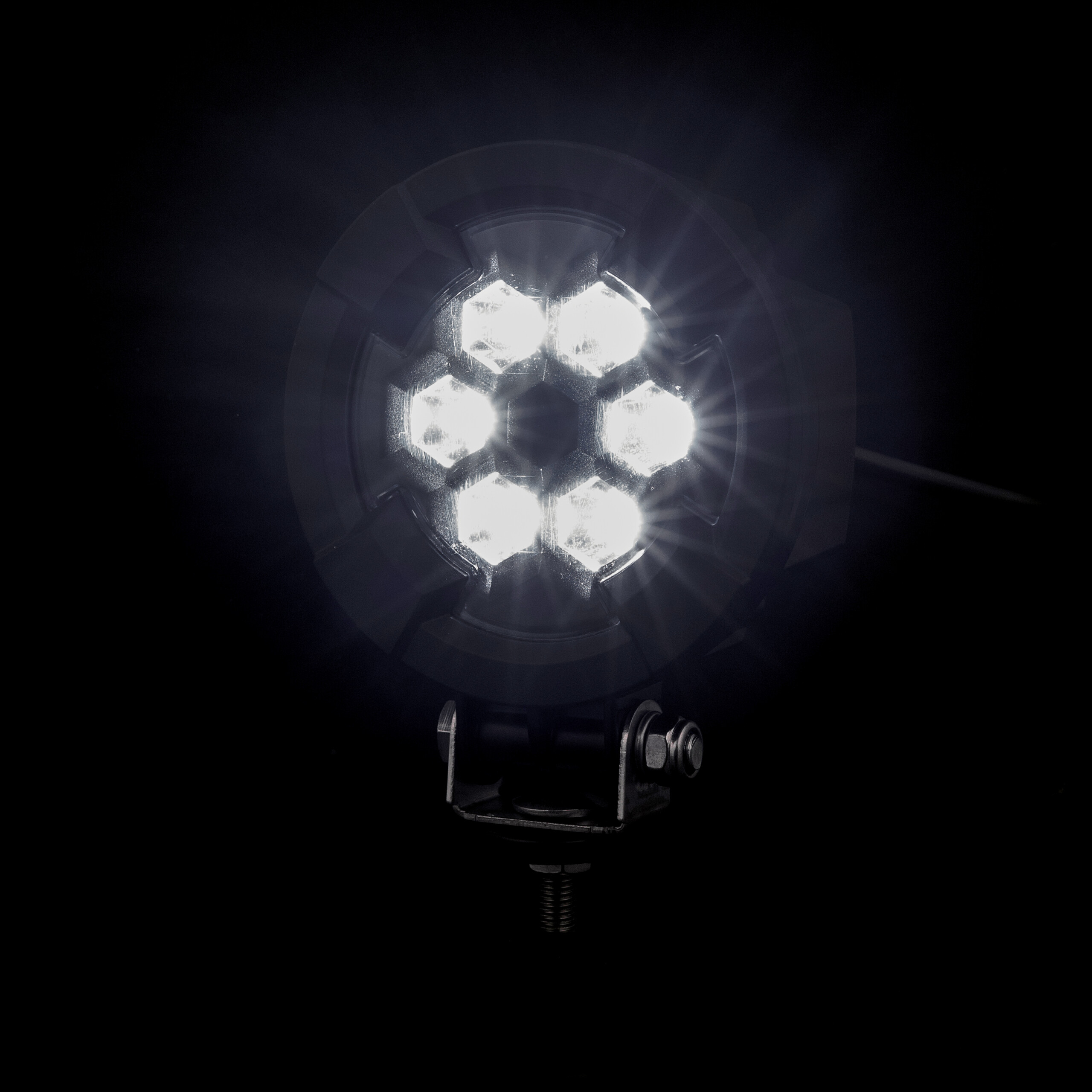 La lampe LRD 3187 RAPTOR est une source de lumière fiable, conçue pour le travail en terrain exigeant, où l’efficacité, la durabilité et la sécurité sont essentielles. Équipée de 6 LED performantes d’une puissance de 18 W, elle génère un flux lumineux de 1600 lm avec une teinte froide de 6500 K, offrant un éclairage clair et confortable de la zone de travail après la tombée de la nuit. La conception ronde de la lampe avec une grille noire garantit un faisceau lumineux directionnel qui éclaire efficacement la zone de travail, tout en minimisant le risque d’éblouissement pour l’opérateur. Le support réglable permet un réglage précis de l’angle d’éclairage en fonction des besoins et de la nature des tâches à effectuer.