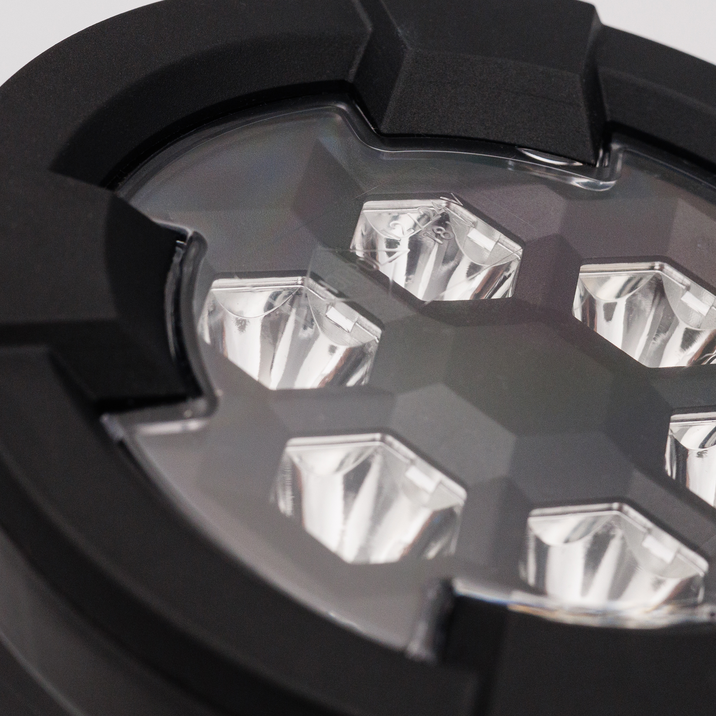 La lampe répond à la norme d’étanchéité IP 68, ce qui garantit une protection totale contre la poussière et l’humidité ainsi qu’un fonctionnement fiable dans une large plage de températures, de -30°C à +50°C. L’homologation R10 confirme la conformité aux normes électromagnétiques, garantissant l’absence d’interférences avec les autres équipements embarqués du véhicule.