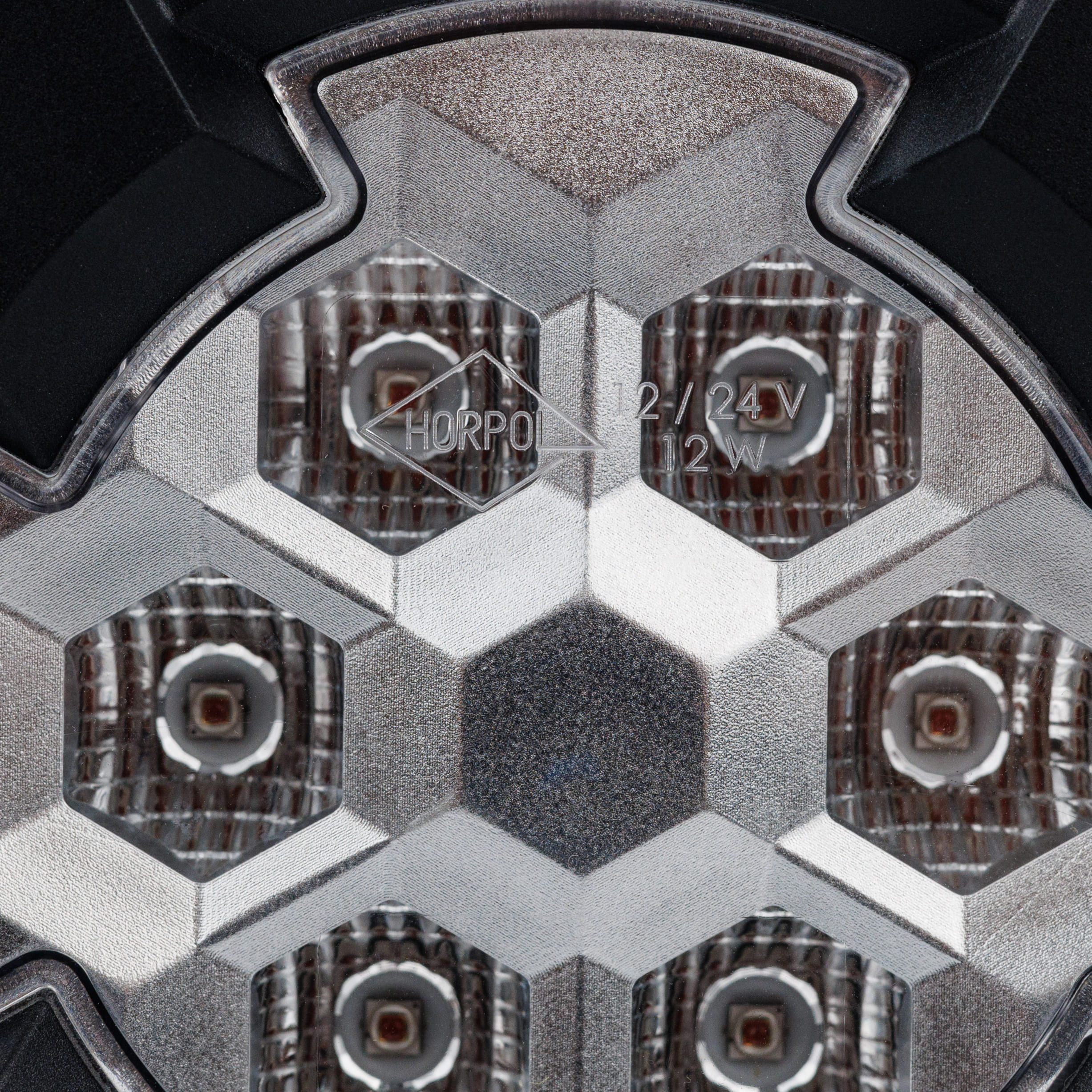 La lampe fonctionne sur une large plage de tension 12/24 V, a une puissance nominale de 12 W et génère un flux lumineux de 650 lm. Elle est adaptée aux environnements difficiles grâce à son indice de protection IP 68 et à sa compatibilité électromagnétique CEM.
