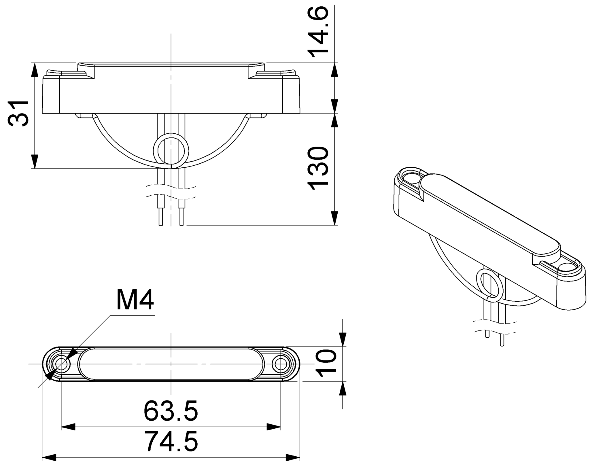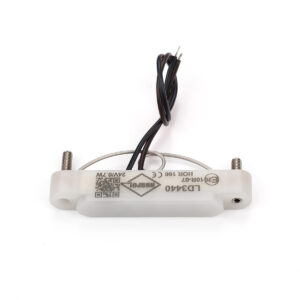 Pour l’alimentation, deux fils noirs d’une section de 0,5 mm² et d’une longueur de 13 cm ont été utilisés. L’un correspond au pôle positif (+), tandis que l’autre correspond au pôle négatif (–).